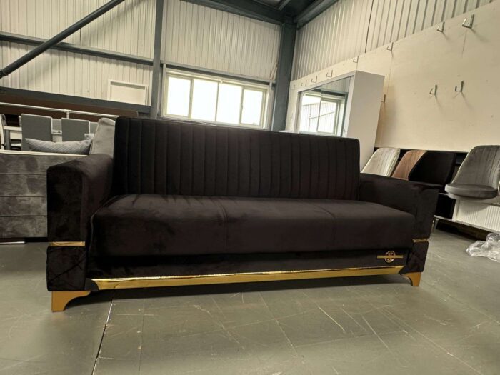 Elevate your living space with the Grey Istanbul Sofa Bed, featuring luxurious golden legs and a sleek golden band at the base that adds a touch of elegance. Perfect for both modern and traditional interiors, this sofa effortlessly converts into a bed, providing a stylish and practical solution for extra sleeping space.