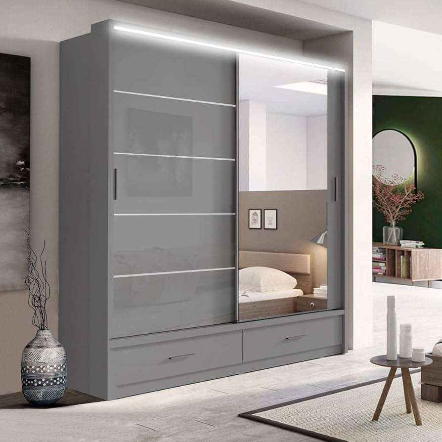 Enhance your bedroom with the Florence Sliding Door Wardrobe, a perfect blend of modern style and practical storage. Made from high-quality solid wood, this wardrobe features elegant mirror glass doors, offering a sleek and timeless design. The bottom drawers add even more storage space, allowing you to organize clothing, accessories, and essentials with ease.
